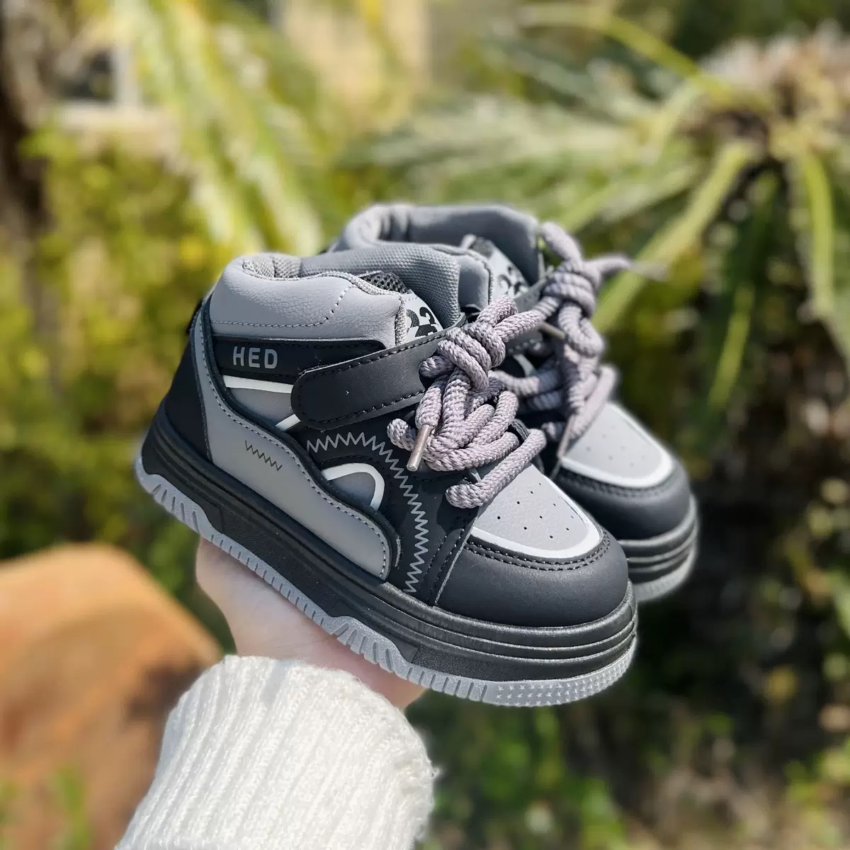 A trendy pair of black and khaki kids’ sneakers crafted for both comfort and style. The soft beige tone gives a clean, versatile look suitable for any outfit, while the lace-up design ensures a secure fit. Built with a cushioned interior and a sturdy, non-slip sole, these sneakers are perfect for school, playtime, and everyday adventures. Lightweight, breathable, and easy to match with any wardrobe.